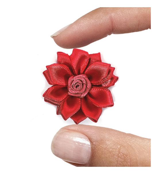 Fiorellino realizzato a mano con tessuto di raso. Diametro del fiore mm. 35 con rosellina centrale di diametro mm 10. Ideale per realizzare splendidi fermagli per capelli, applicarli su T-shirts, camicie, jeans, bomboniere, o più semplicemente per decorare e abbellire tutti i tuoi accessori come astucci, borse, scarpe da ginnastica, zainetti e molto altro.