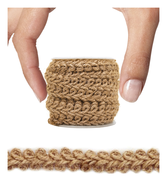 Passamaneria in canapa naturale stile intreccio mm.12 in bobina da 5 metri. Utilizzabile per decorare cesti, bomboniere, scatoline o per ornare tovagliette e accessori di vario genere