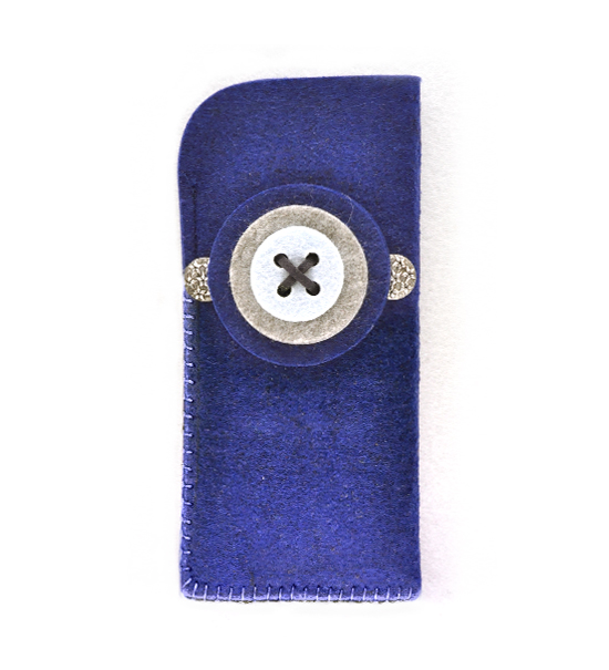 Kit fai-da-te “Creative kit Myola” per realizzare astuccio portaocchiali in feltro di colore blu, busta contente: sagoma di feltro base, matassina di filo, applicazioni varie e istruzioni pratiche.